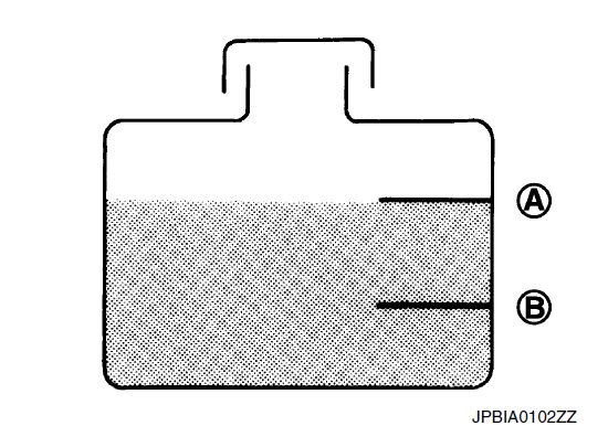 - При остывшем двигателе проверьте, находится ли уровень охлаждающей жидкости в бачке двигателя в пределах от “MIN” до “MAX”.