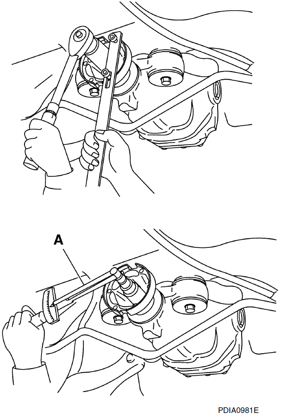 - 8. Измерьте общий предварительный натяг с помощью датчика предварительного натяга (A) [SST:ST3127S000 (J-25765-A)].