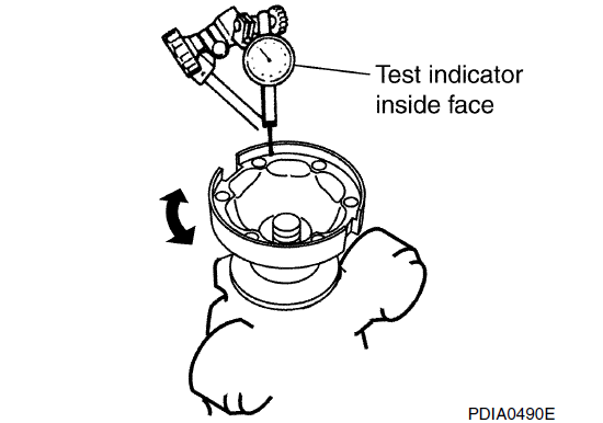 - Если после смены фазы значение биения все еще выходит за пределы допустимого значения, возможной причиной может быть неисправность узла ведущей шестерни и подшипника ведущей передачи, а также неисправность подшипника ведущей передачи. Проверьте эти элементы и при необходимости отремонтируйте.