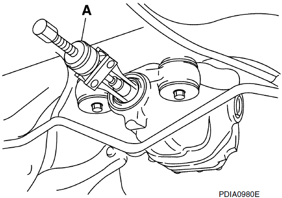 - 12. Снимите переднее сальниковое уплотнение с помощью съемника (A) [SST: KV381054S0 (J-34286)].