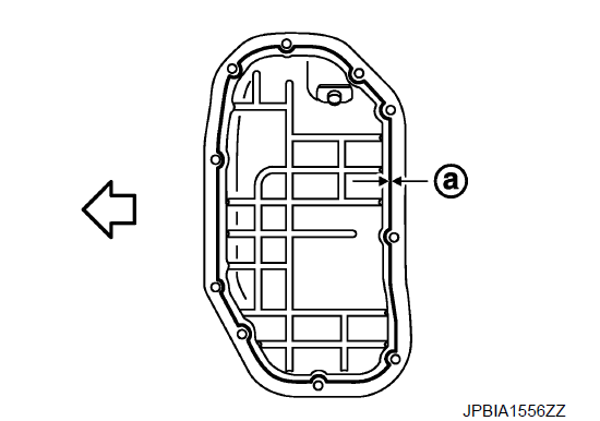 - b. Нанесите на масляный поддон (нижний) непрерывный слой герметика с помощью прижимной трубки (инструмент для коммерческого обслуживания), как показано на рисунке.