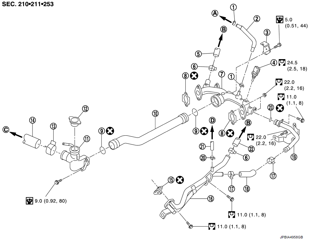 - Сборка: Подключение всех патрубков системы охлаждения с заменой хомутов (при необходимости). Установка снятых защитных элементов.