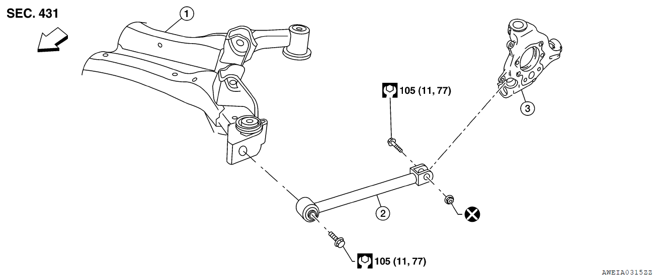 Задние продольные рычаги замена на автомобиле INFINITI JX