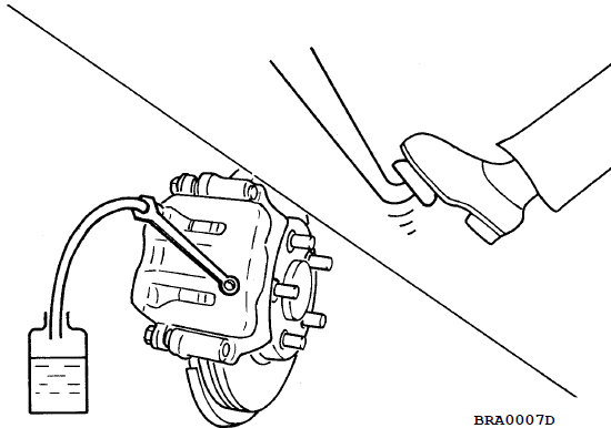 Повторяйте эту операцию с интервалом в две-три секунды, пока не будет удалена вся старая тормозная жидкость. Регулярно доливайте новую тормозную жидкость в дополнительный бачок главного цилиндра.
