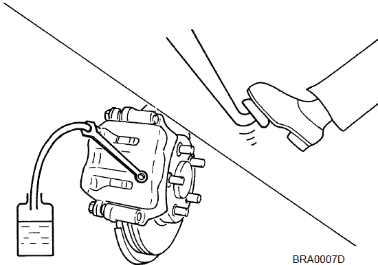 - 2. Ослабьте выпускной клапан, медленно нажмите на педаль тормоза до полного хода, а затем отпустите педаль.