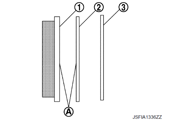 - Нанесите смазку MOLYKOTE® AS880N или смазку на силиконовой основе на соответствующие поверхности A между тормозной колодкой 3 и прокладкой 1, на соответствующие поверхности B между прокладкой и крышкой прокладки 2 и установите прокладку и крышку прокладки на тормозную колодку.