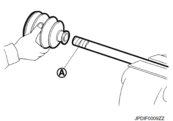 - Заклейте зазубрины на основании привода скотчем (A), чтобы защитить пыльник от повреждений.