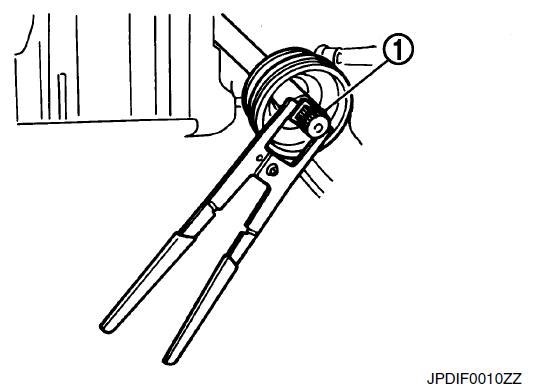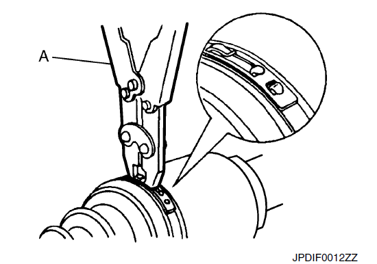 - 11. Закрепите концы ботинка резинками для крепления ботинок с помощью инструмента для обжима резинкой для крепления ботинок (A) [SST: KV40107300 ( − )].