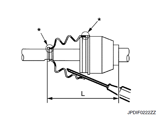 Если смазка прилипла к монтажной поверхности пыльника (обозначена знаком “*”) на валу или узловом соединении, пыльник может оторваться. Удалите всю смазку с поверхности.