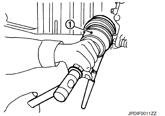 - 2. Заполните узел соединения с зазубренным пазом (1) смазкой NISSAN original или аналогичной консистентной смазкой до тех пор, пока зазубренный паз и шариковая канавка