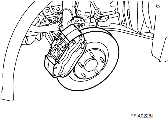 - 6. Несколько раз нажмите на педаль тормоза, чтобы убедиться в отсутствии тяги переднего дискового тормоза.