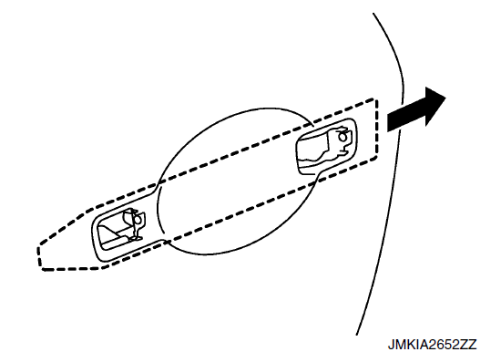 - 7. Потянув за наружную ручку, снимите цилиндр замка двери в сборе (со стороны водителя) или накладку на наружную ручку (со стороны пассажира).