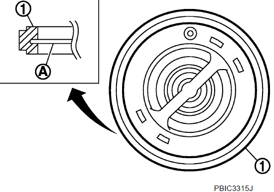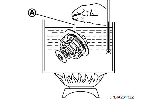 - Поместите нитку (A) так, чтобы она попала в клапан термостата. Полностью погрузите в емкость, наполненную водой. Нагревайте, помешивая.