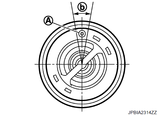 Установите термостат так, чтобы поворотный клапан (A) был направлен вверх. Отклонение положения может составлять не более 20 градусов (b).