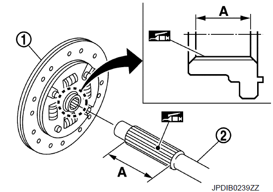 - 3. Установите диск сцепления с помощью приспособления для выравнивания сцепления (A) [Инструмент для коммерческого обслуживания].