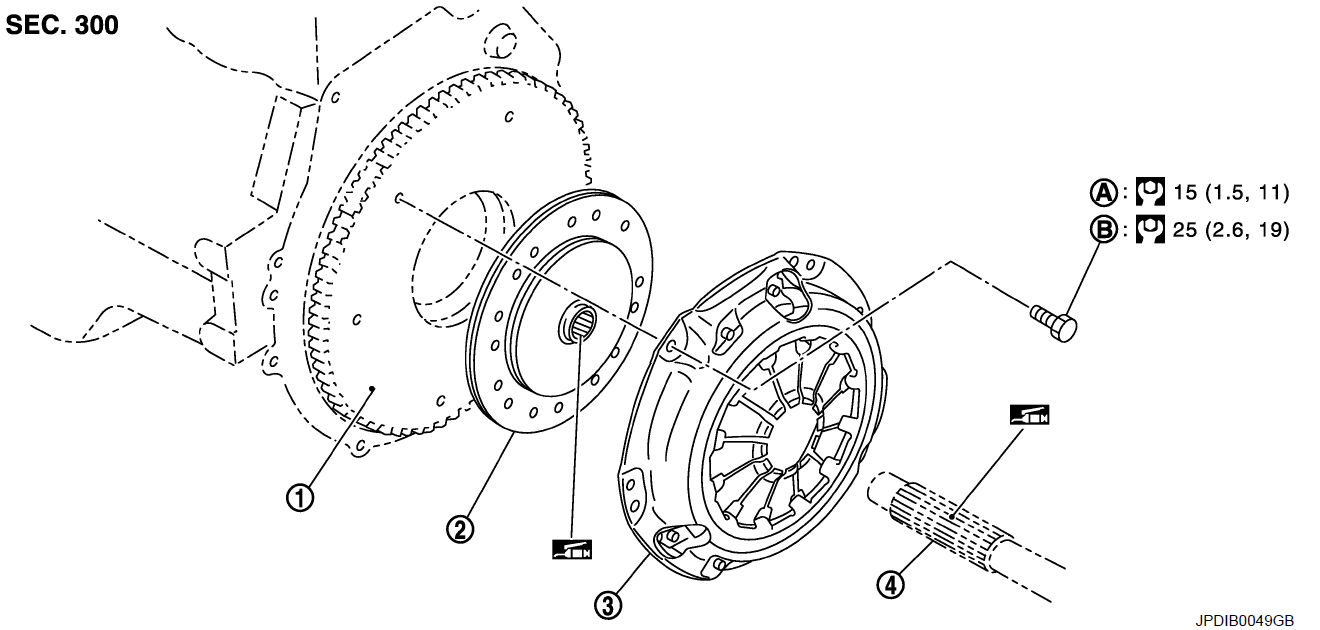Никогда не наносите смазку на поверхность диска сцепления, нажимного диска и маховика.