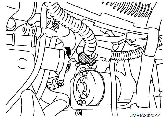 - 4. Снимите водяной шланг вариатора со стороны корпуса термостата (модели CVT).