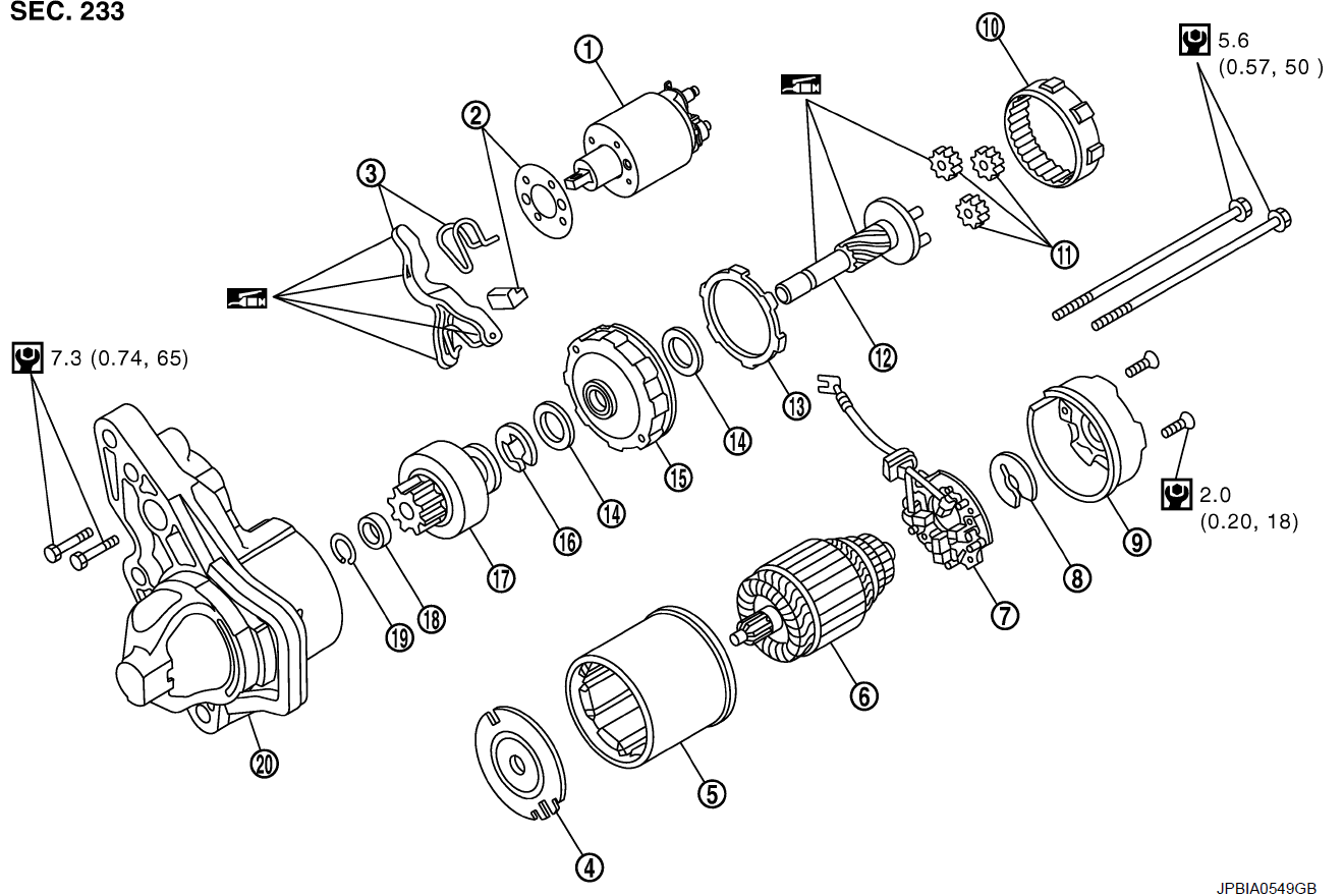 При сборке стартера нанесите высокотемпературную консистентную смазку для смазки подшипников, шестерен и поверхностей трения.