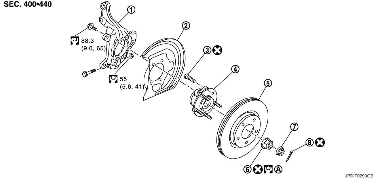 Поскольку приводной вал собирается запрессовкой, используйте диапазон моментов затяжки контргайки ступицы колеса.