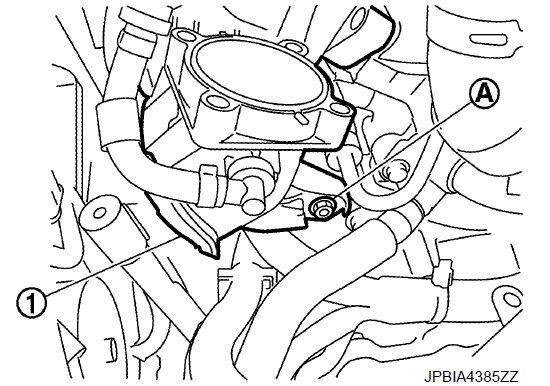 - Ослабьте и выверните болт крепления впускного коллектора (A).