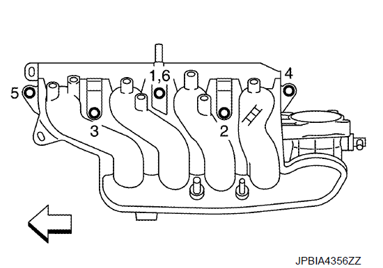 - 12. Снимите впускной коллектор (1), выполнив следующую процедуру.
