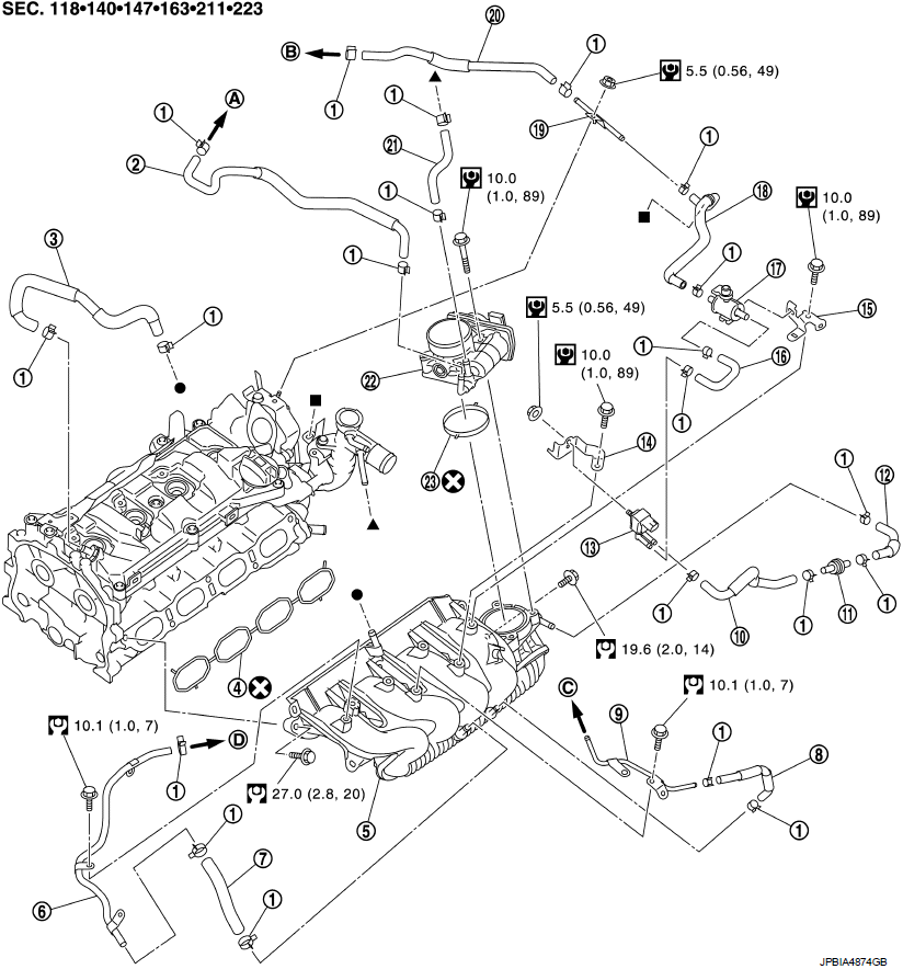 Замена прокладок впускного коллектора NISSAN JUKE F15
