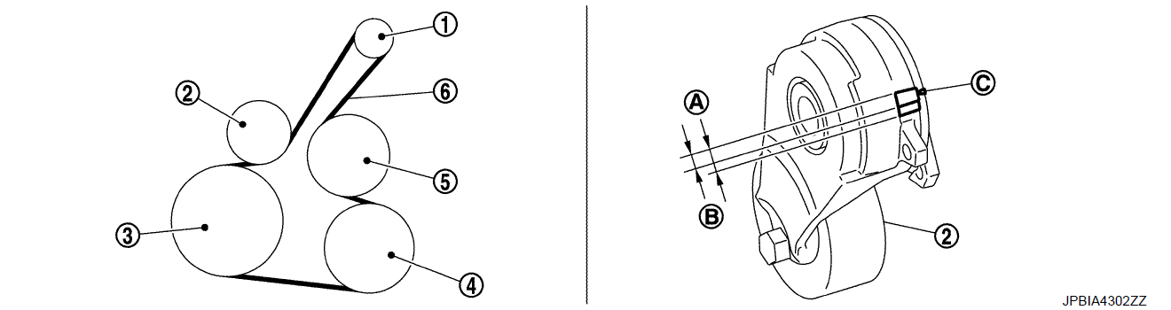 - 3. Если индикатор автоматического натяжения приводного ремня находится за пределами допустимого диапазона использования или приводной ремень поврежден, замените приводной ремень.