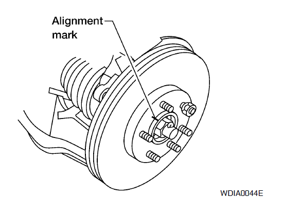 - 4. Нанесите метки центровки на дисковый ротор, ступицу колеса и подшипниковый узел, затем снимите дисковый ротор.