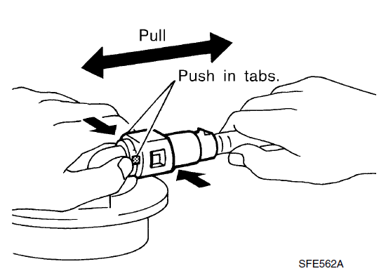 - Возьмитесь за боковые стороны разъема, вдавите выступы и вытяните трубку.