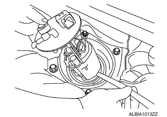 - 11. Снимите стопорное кольцо с датчика уровня топлива, топливного фильтра и топливного насоса в сборе.