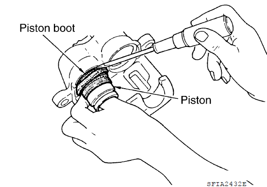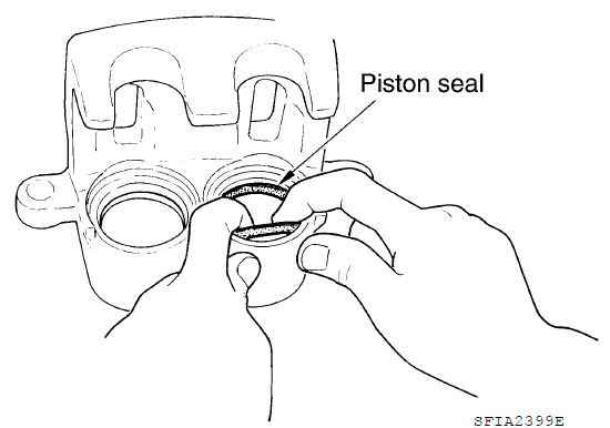 - 4. Снимите поршневые уплотнения с корпуса тормозного суппорта с помощью подходящего инструмента.