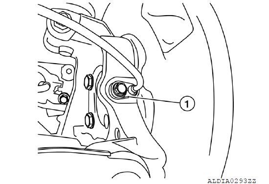 - 6. Снимите датчика положения колёс (1) и жгут проводов с заднего поворотного кулака.