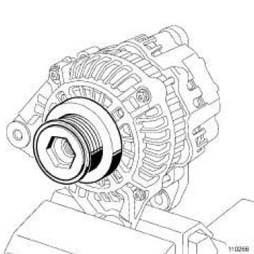 - шестигранное гнездо (3) или шлицевое гнездо (6) в шкиве генератора переменного тока (в зависимости от исполнения),